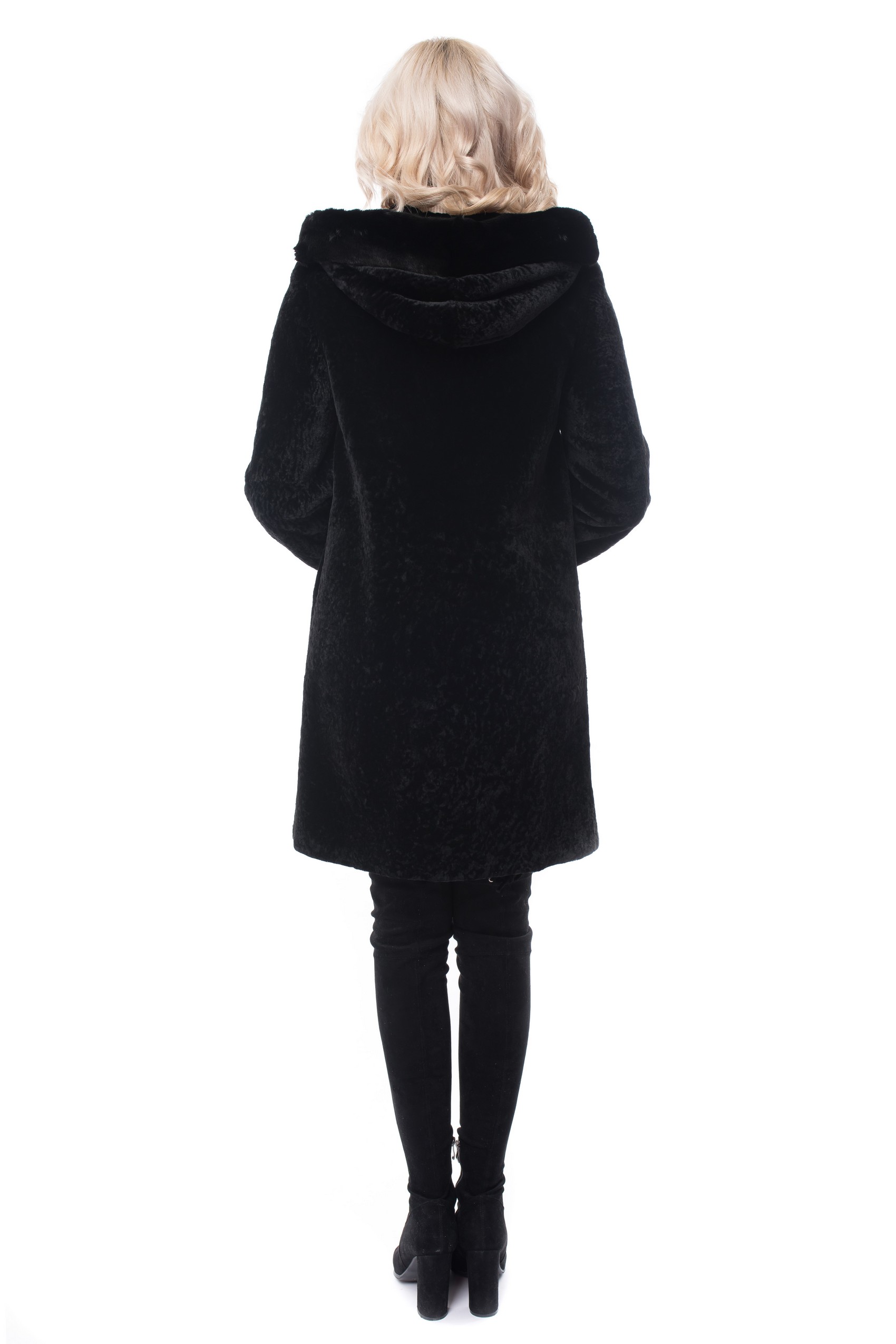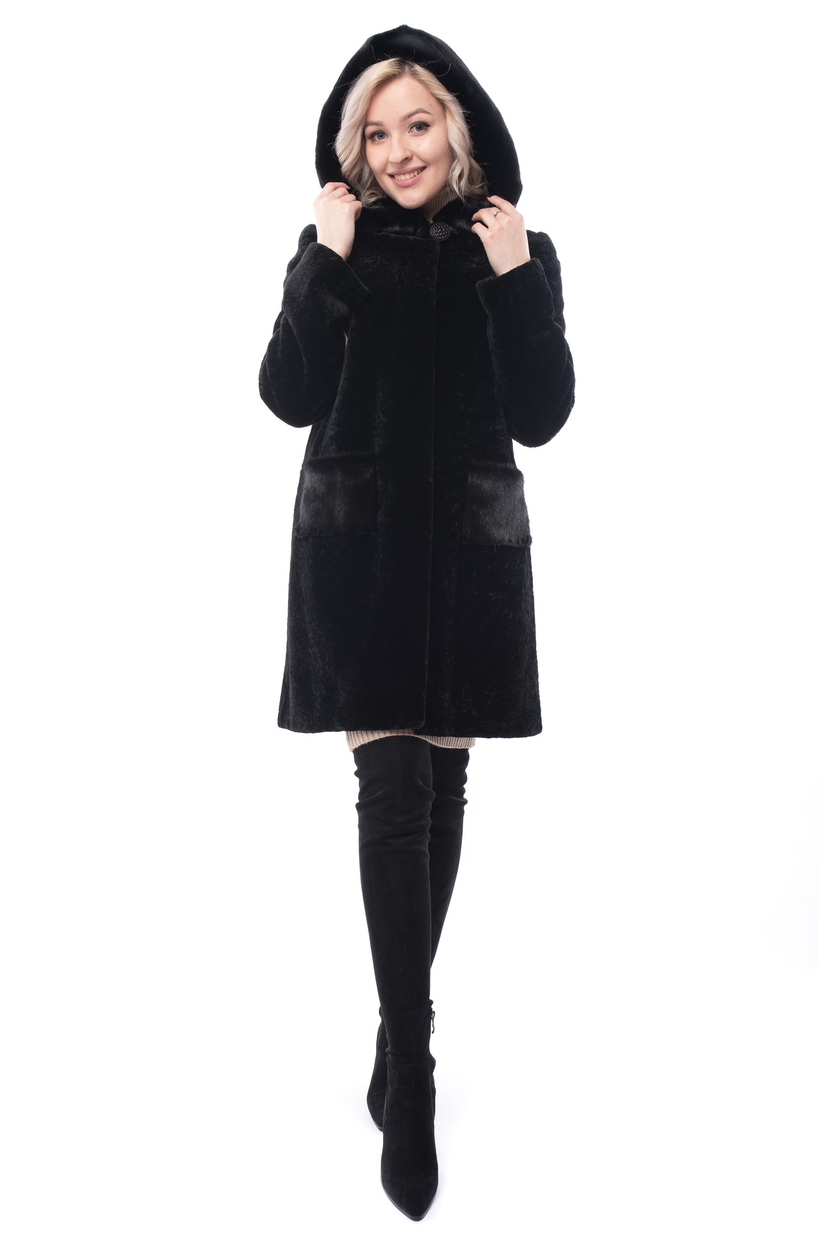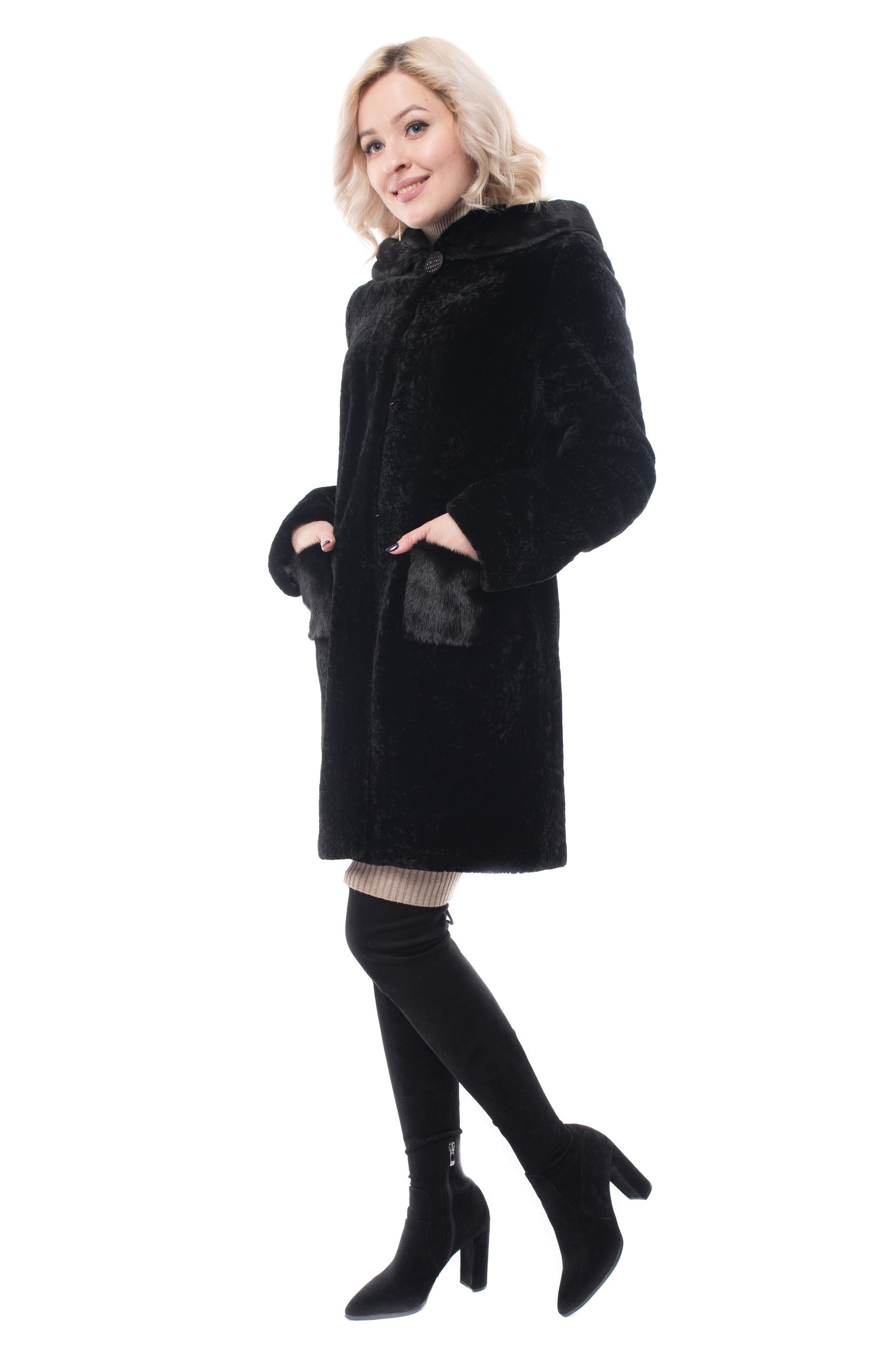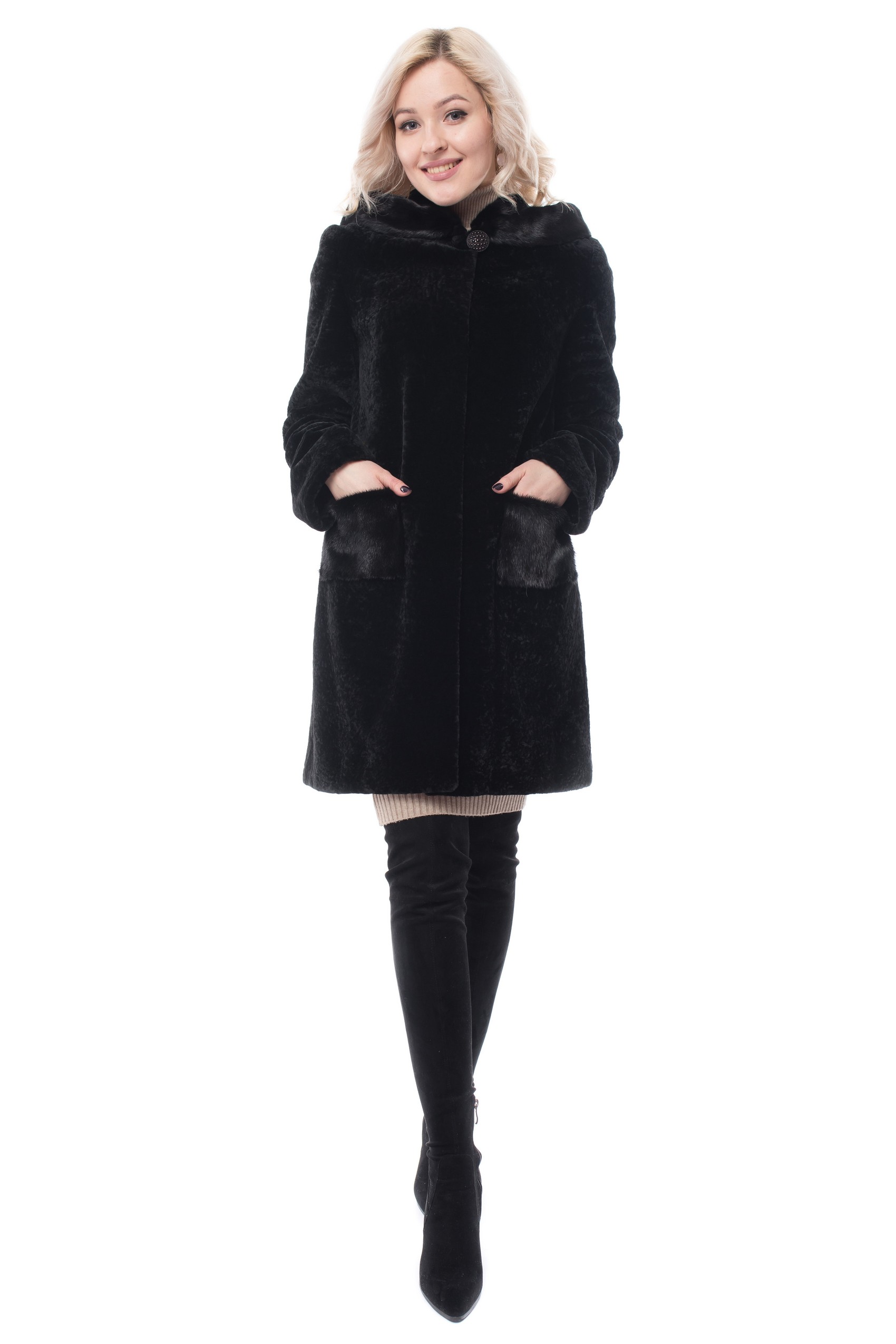 Полупальто с верхом из натурального меха Жен ЕЛЕНА М-17 Натуральный мех-овчина,отделка-норка,подкладка-полиэстер крашенная