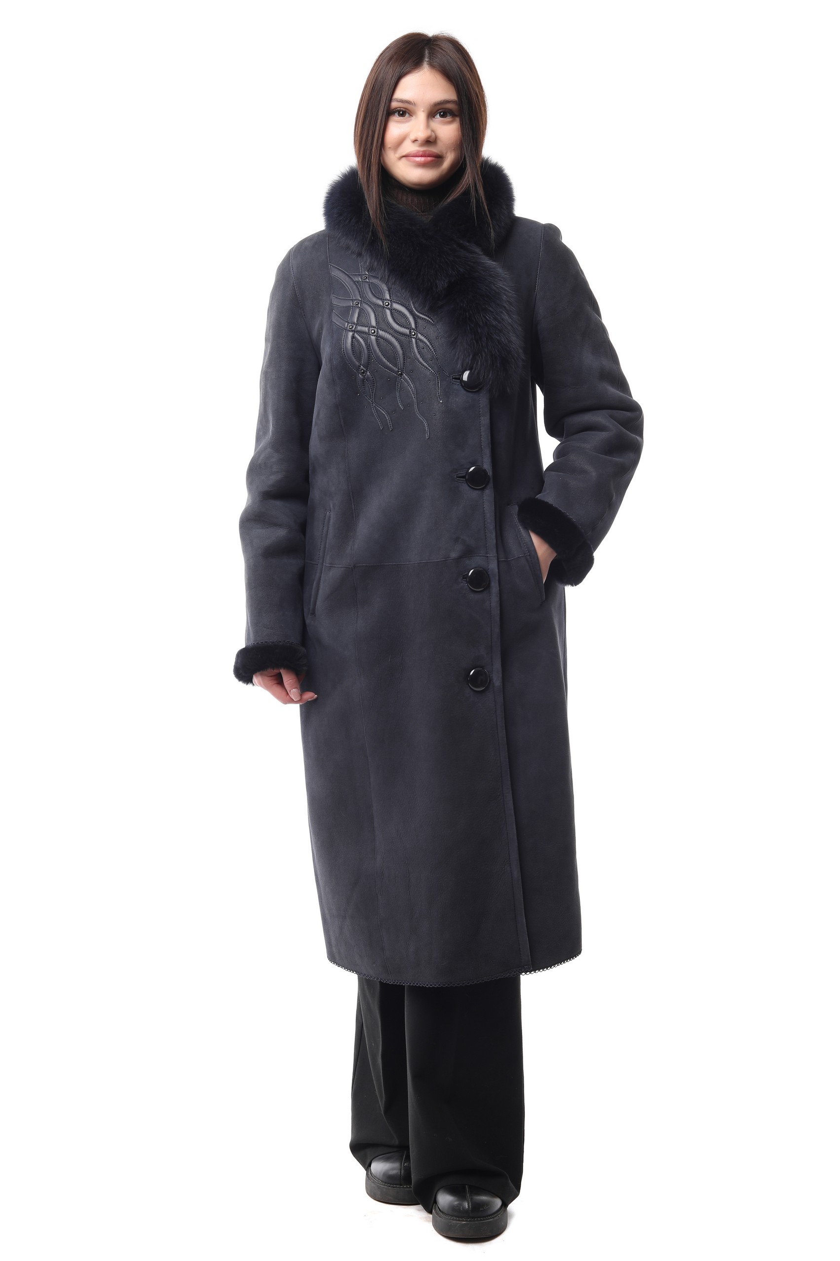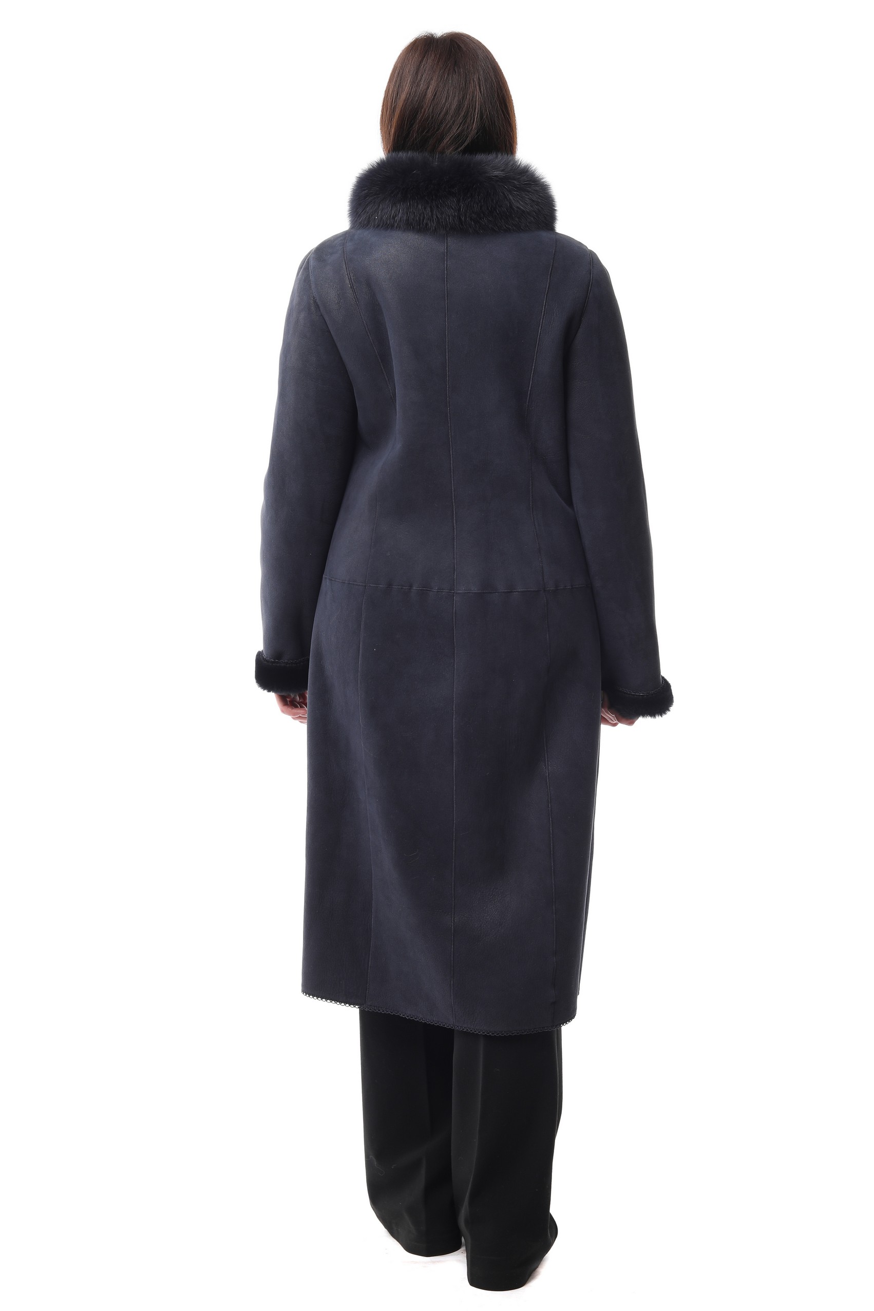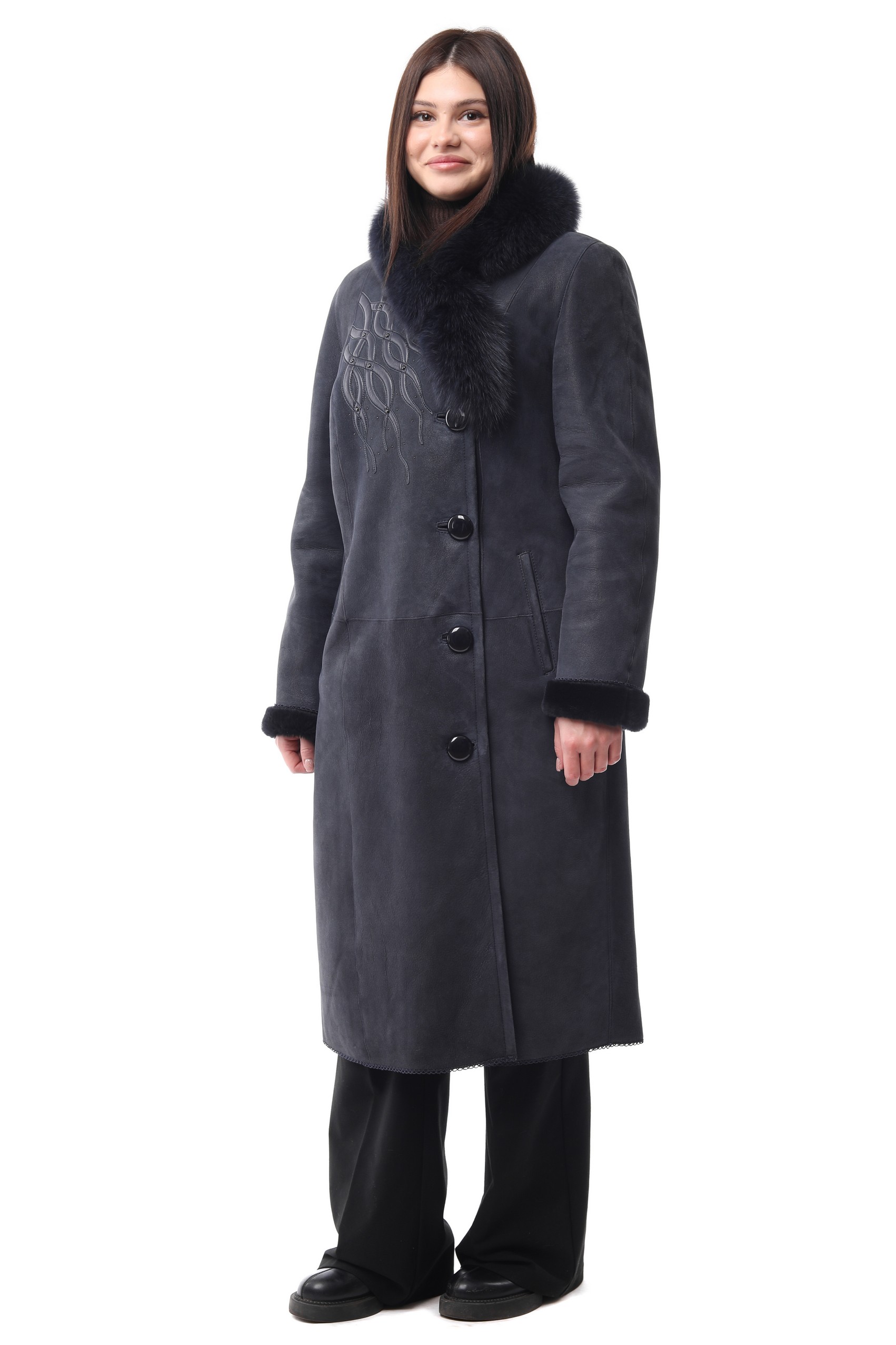 Пальто нагольное женское Lale Antilop 4052 натуральный мех-овчина,отделка- мех лисы крашенная