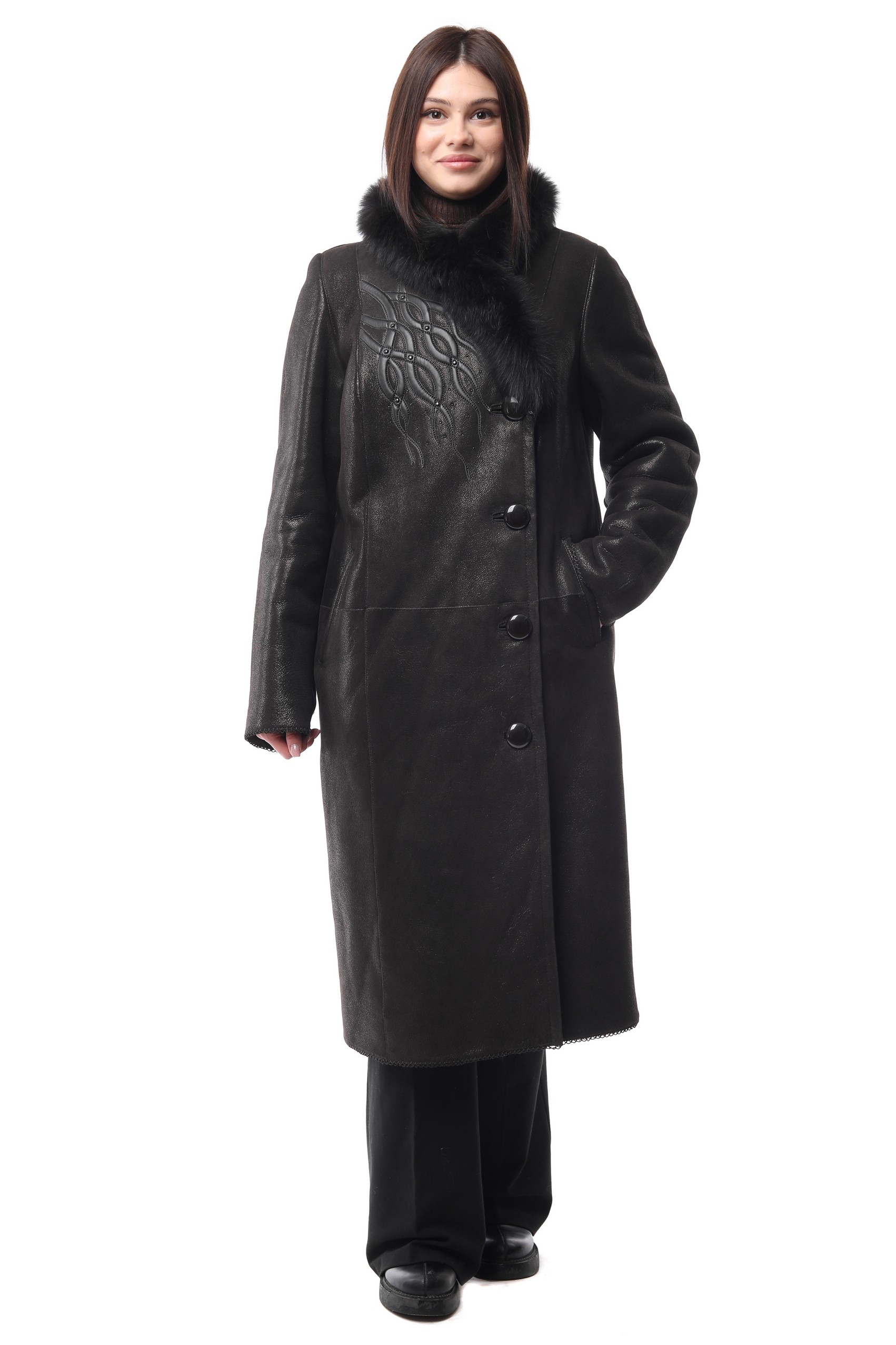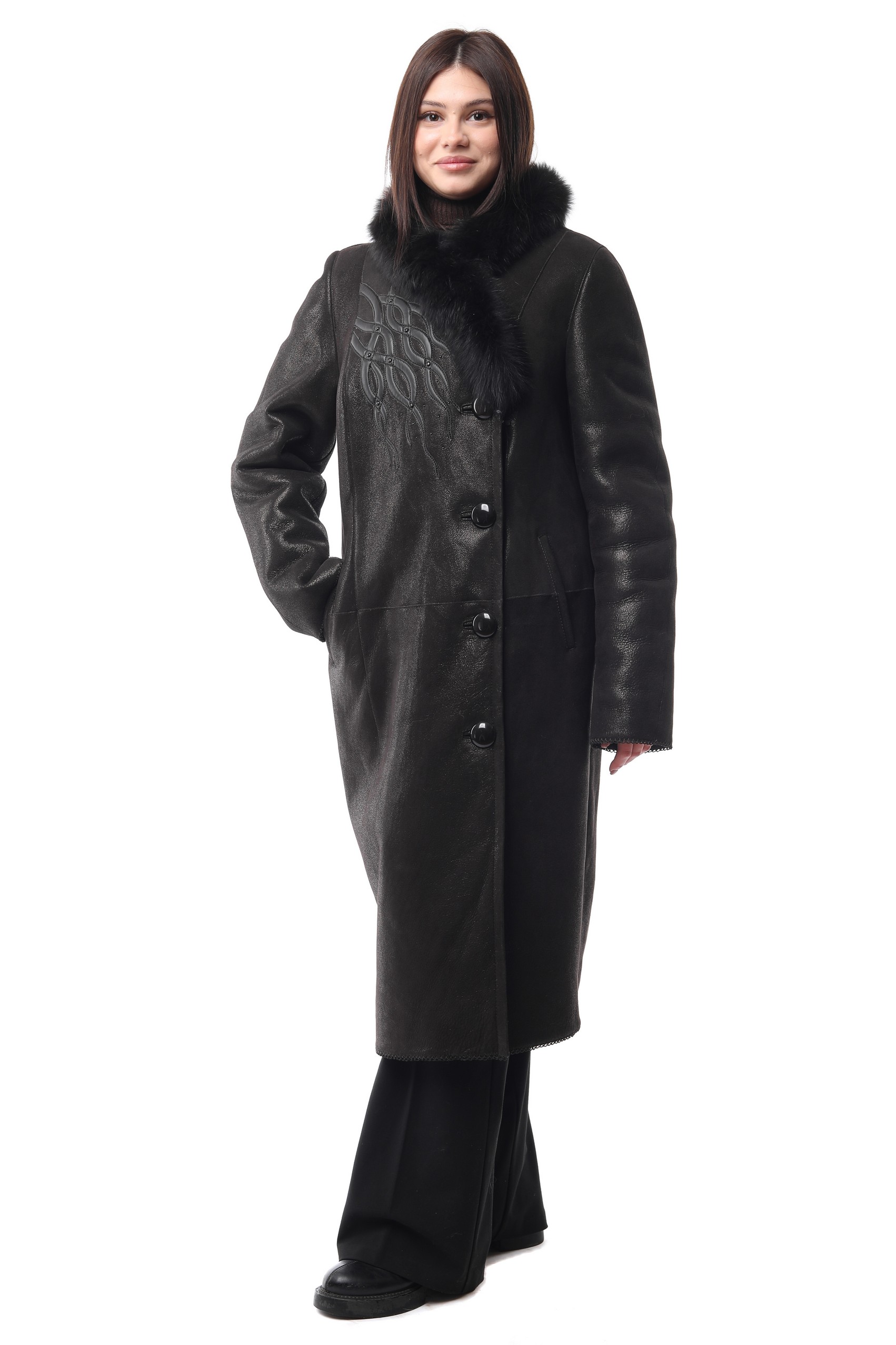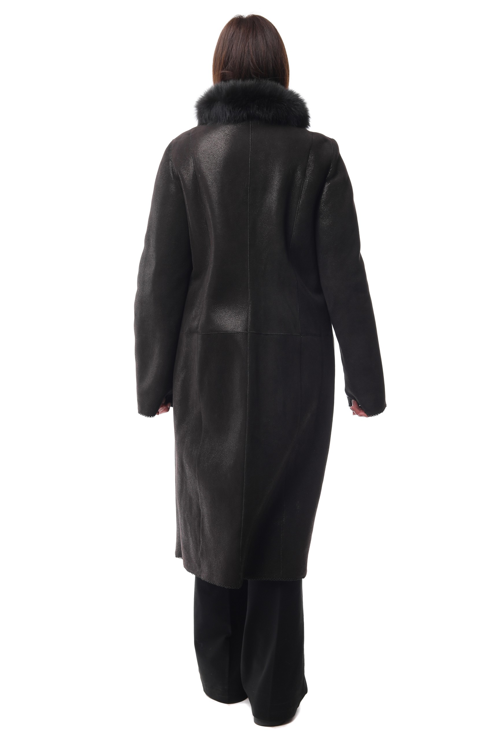 Пальто нагольное женское LINDI WEST 4052 натуральный мех-овчина,отделка- мех лисы крашенная