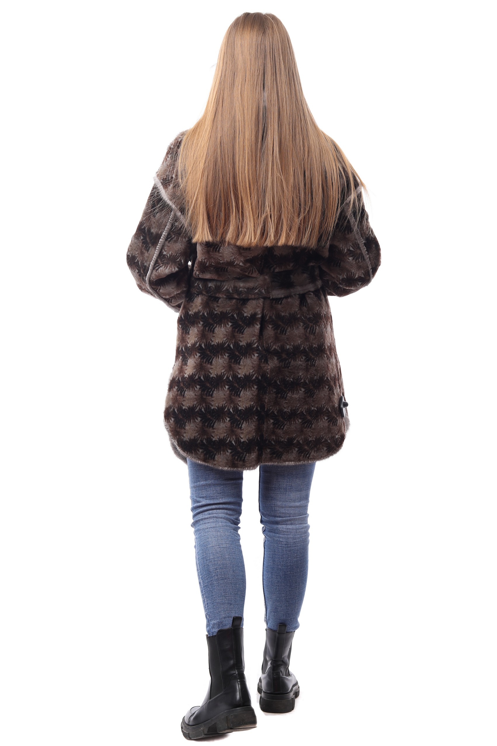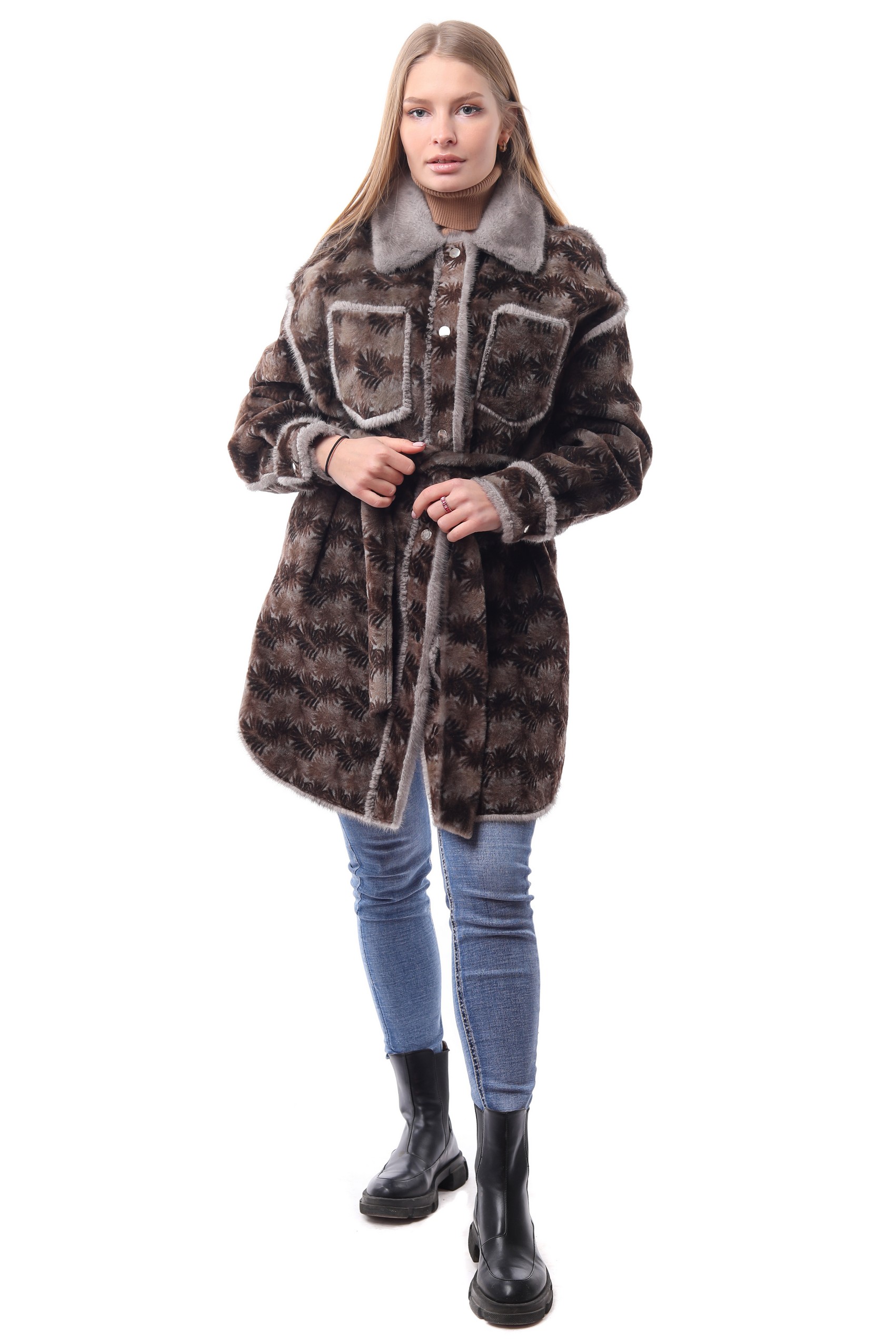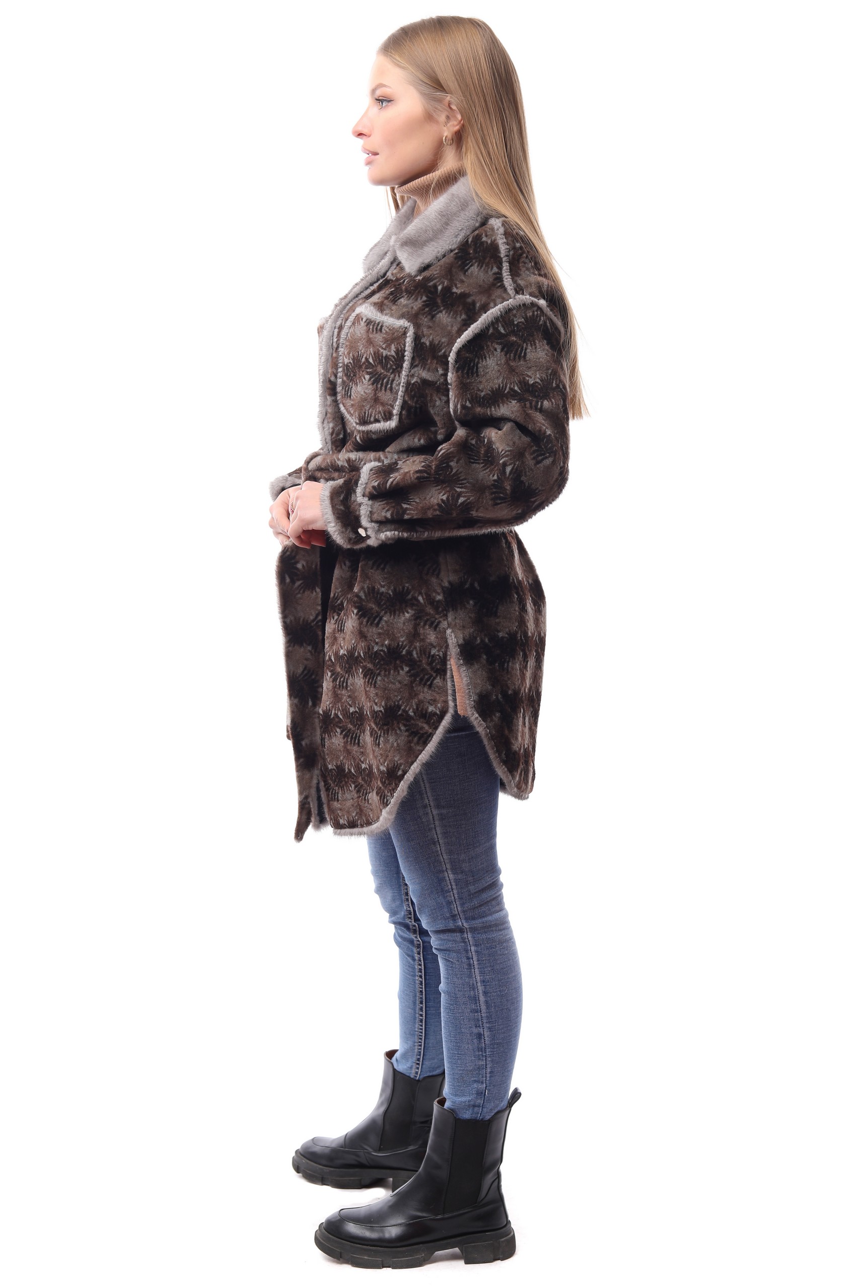 Полупальто нагольное женское BIANCA 10148 натуральный мех-овчина,отделка-мех норки крашенная